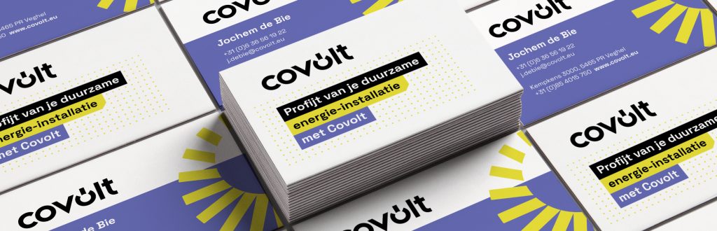 Covolt handhaaft een kleurenpallet met 4 basiskleuren. De stijl is eenvoudig en levendig.