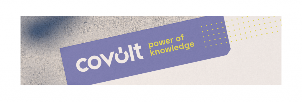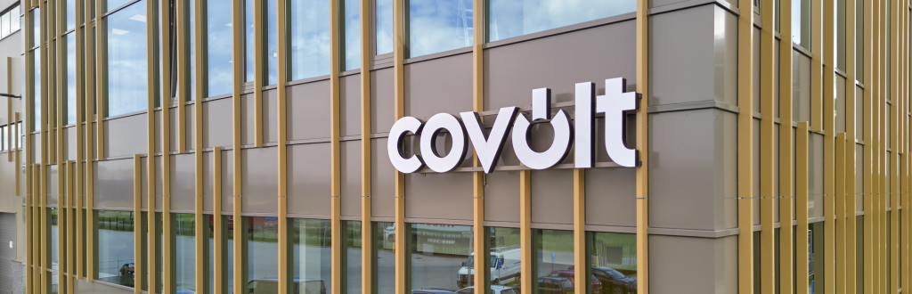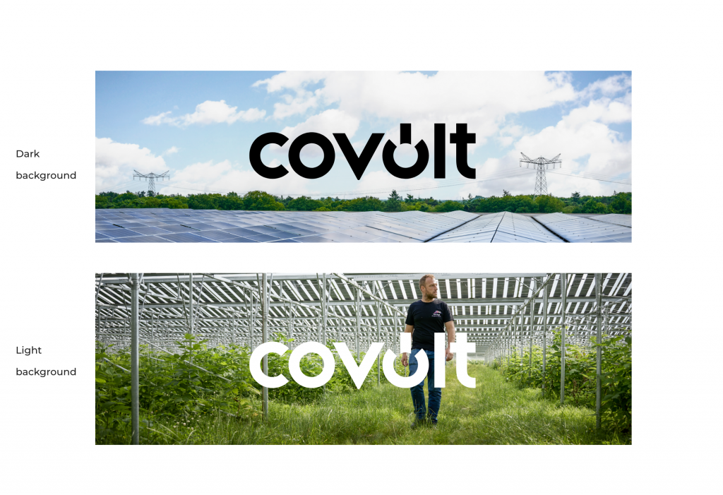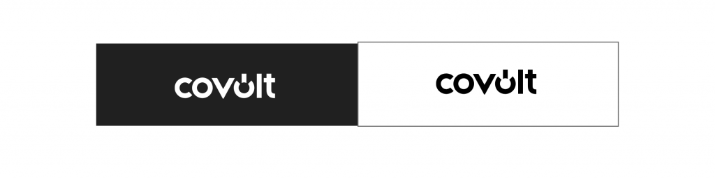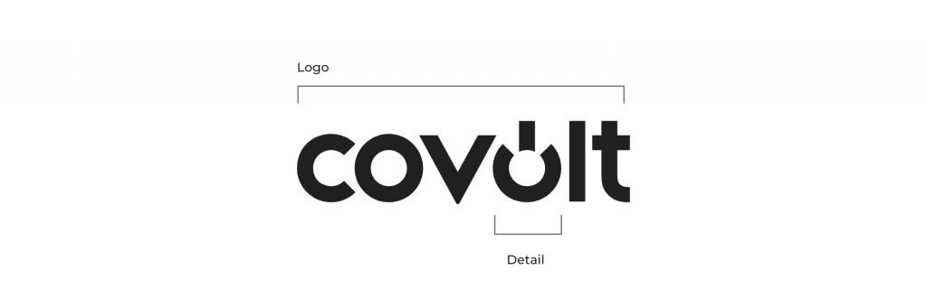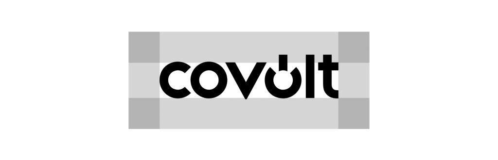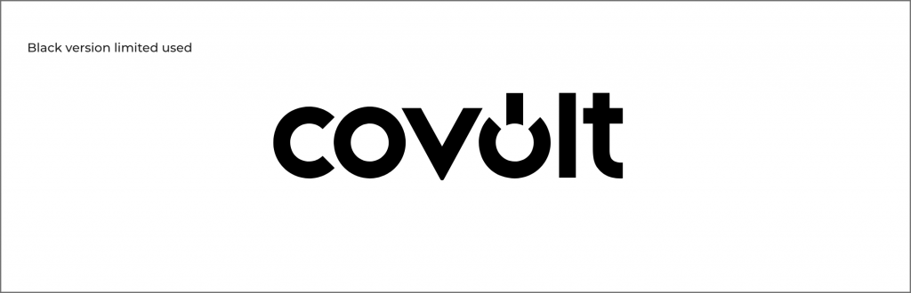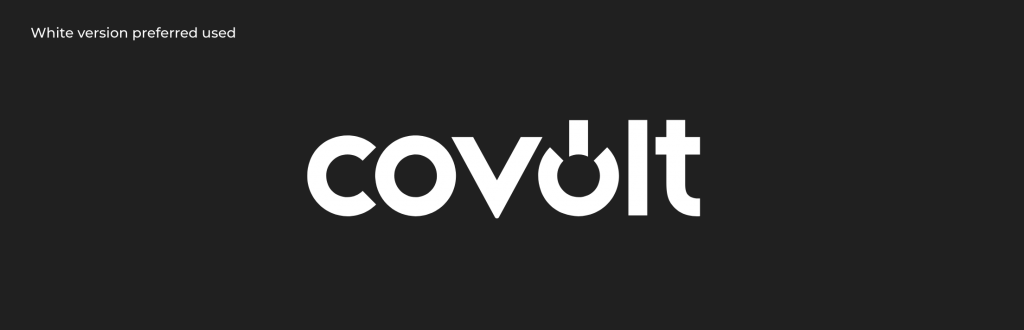 Het logo van Covolt bestaat uit twee elementen: de merknaam in lopende tekst en een uniek aan/uit-symbool. Beide onderdelen kunnen samen of apart worden toegepast, afhankelijk van de context.