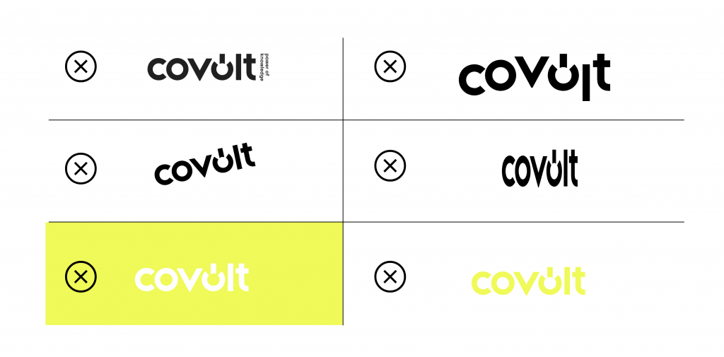 Het logo van Covolt moet altijd als geheel worden toegepast. Wijzigingen of vervormingen zijn niet toegestaan, om de herkenbaarheid en integriteit van het merk te waarborgen.